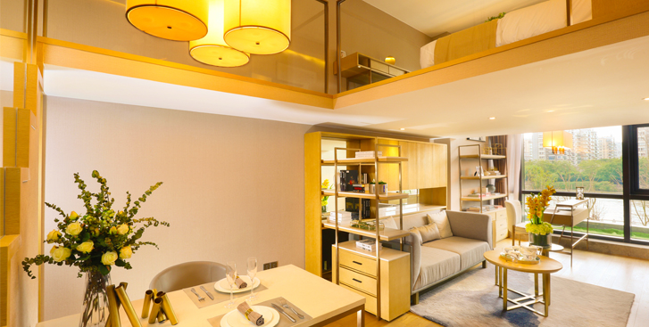 两幢酒店式公寓总高80米,共21层,主力户型为45-70方平层一室一厅和loft两室两厅。东、南、北朝向的大部分房源均能看见运河,最大程度保证了运河景观资源的完整性。